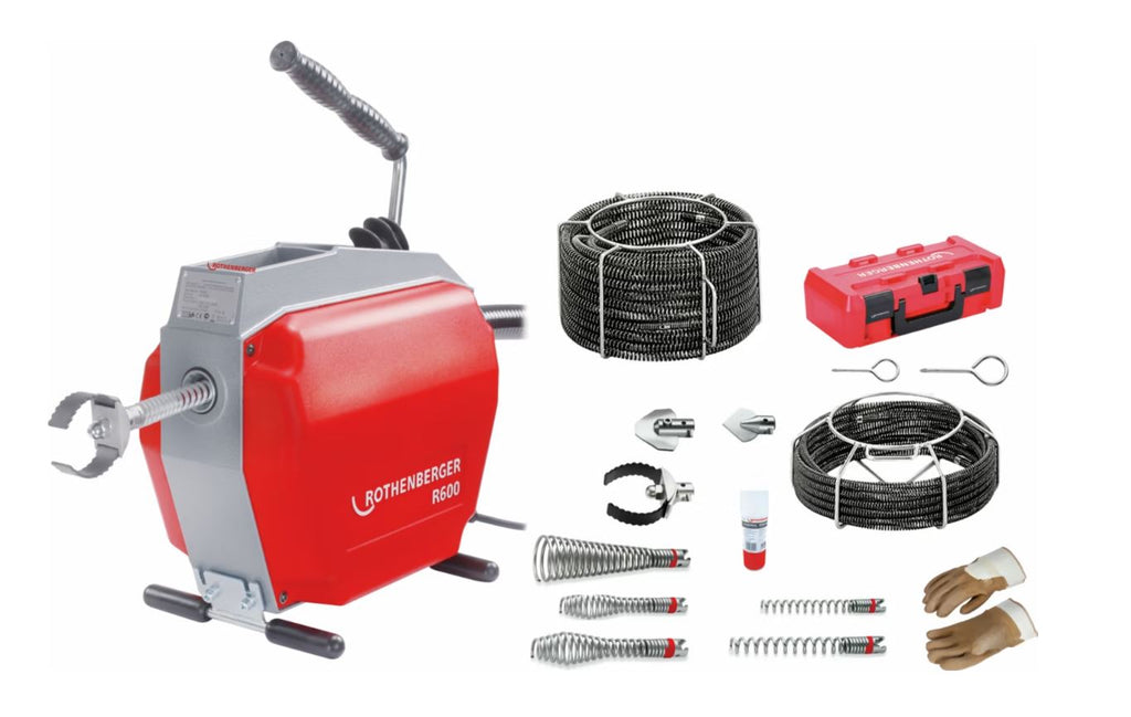Macchina per disotturare e pulizia tubazioni R600, 230V + Set spirali/utensili Standard 16-22 mm ROTHENBERGER