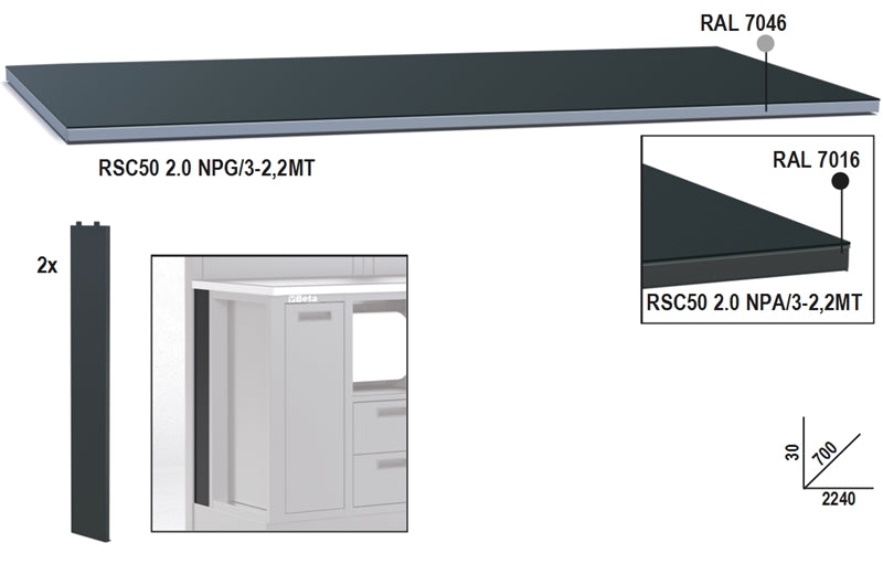 Piano di lavoro in lamiera da 2,2m per banco arredo officina RSC50 2.0 Beta RSC50 2.0 NP/3-2,2MT