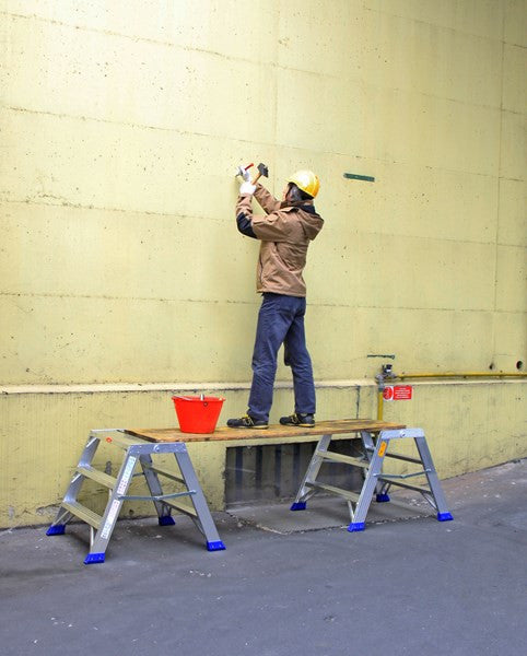 Scala doppia a gradini a 2 tronchi di salita - piattaforma maggiorata