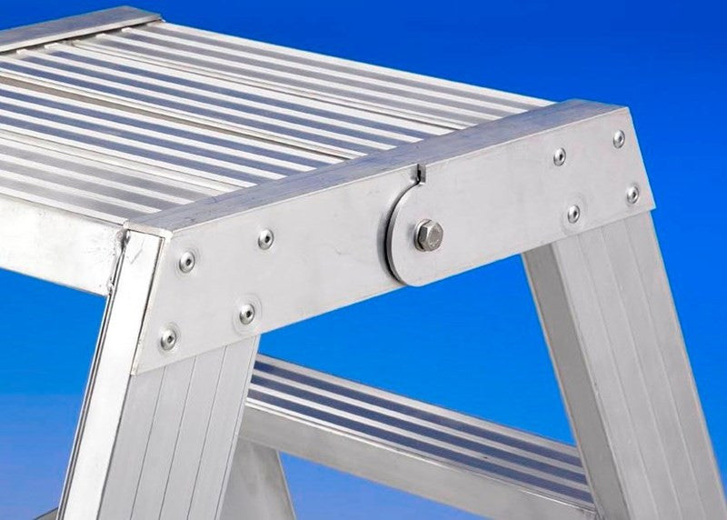Per utilizzo professionale è costruita in alluminio estruso nervato. I gradini sono saldati ai montanti per creare un monolito ultraresistente.