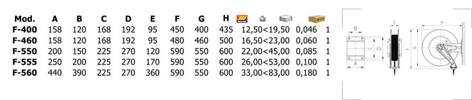 Avvolgitubo fisso PER ARIA-ACQUA 20 bar Mod. F-460 CON TUBO