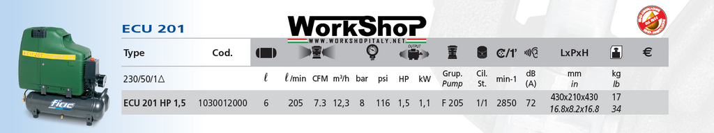 Compressore d’aria coassiali senza olio FIAC ECU 201 HP 1,5 1100w