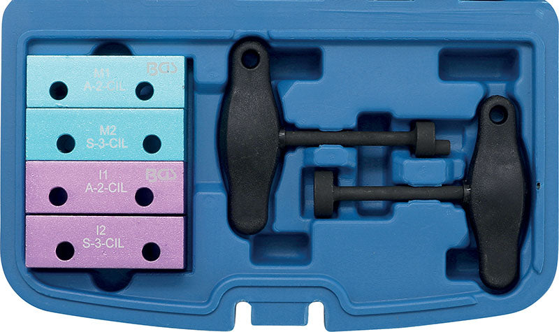 • per la regolazione della messa in fase del motore durante la sostituzione della cinghia di distribuzione, la riparazione della testata cilindri, la sostituzione della guarnizione testata cilindri, ecc... • idoneo per Alfa Romeo: 145/146/147/155/156/166/ Spider/GTV • idoneo per motori Twin Spark 1.4 / 1.6 / 1.8 / 2.0L 16V Twin Cam Codici motore: 162.01 / 322.01 / 323.01/ 323.10 / 335.03 / 671.06 / 672.04 / 676.01 • comprende i seguenti utensili: - utensile per tensionatore cinghia di distribuzione da usare come OEM 1822149000 - tensionatore contralbero di equilibratura da usare come OEM 1822154000 - utensile di impostazione albero a camme (porpora) da usare come OEM 1825042000 - utensile di impostazione albero a camme (blu)da usare come OEM 1825041000 |