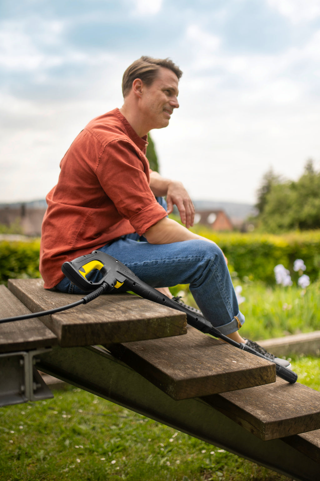 L'idropulitrice K 4 Black Home è lo strumento ideale per pulire veicoli e aree esterne di medie dimensioni. La dotazione include una pistola e un tubo ad alta pressione di 6 metri, una lancia Vario Power Spray (VPS) e un ugello mangiasporco con getto rotante per la rimozione dello sporco ostinato. Un filtro dell'acqua protegge la pompa da piccole particelle di sporco. La pressione dell'acqua può essere regolata semplicemente ruotando la lancia - per una pulizia particolarmente mirata e accurata di tutte le superfici, anche quelle più delicate. Il lavasuperfici T 1 incluso consente una pulizia più rapida su grandi superfici con risultati perfetti. Le lance, il tubo flessibile e la pistola ad alta pressione possono essere riposti sugli alloggiamenti della macchina.
