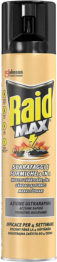 spray con azione ultrarapida, efficace per 4 settimane, uccide scarafaggi e formiche e loro uova, la sua formula è efficace anche su altri insetti striscianti come pesciolini d'argento e ragni.