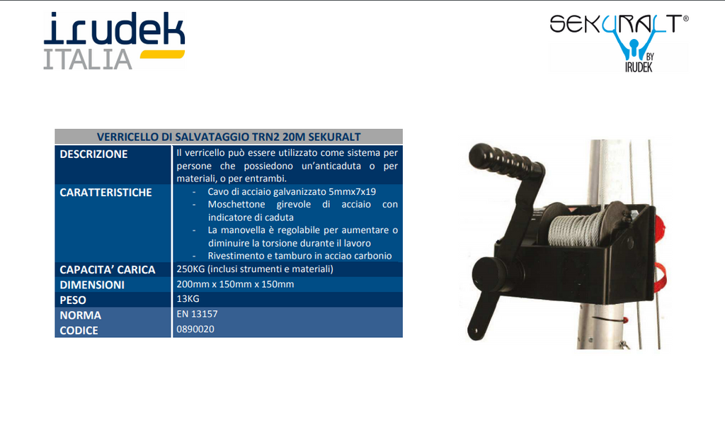 Verricello per treppiedi recupero IRUDEK SEKURALT TRN2