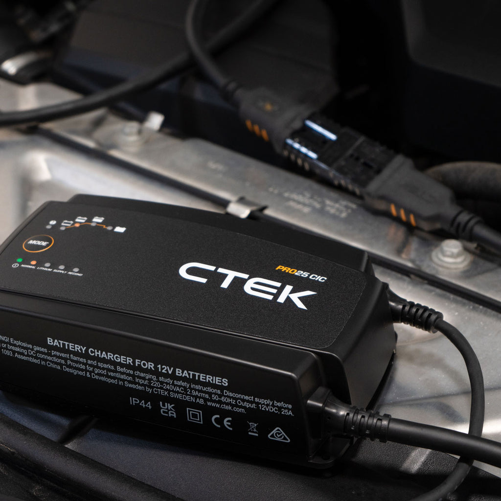 Il modello PRO25 CIC è un caricabatteria e mantenitore automatico specialmente concepito per assistere le vetture nelle showrooms dei Concessionari. È dotato del nuovo connettore PRO CONNECT INDICATOR che segnala lo stato di carica della batteria e permette di separare i cavi di ricarica dall’unità centrale. In questo modo viene semplificato il posizionamento del caricabatteria sotto la vettura ed il passaggio dei cavi per raggiungere la batteria è più agevole.