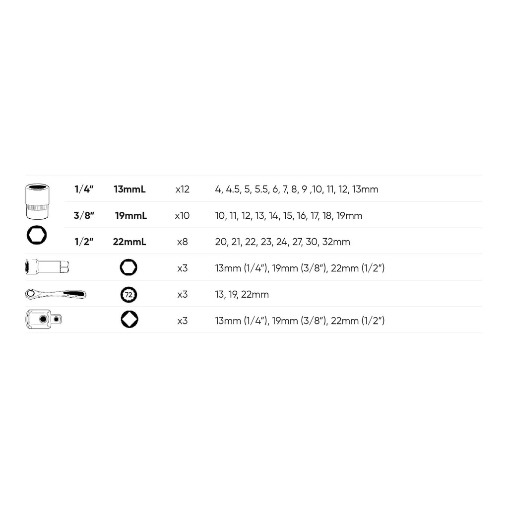 · 3/8” 19 mmL: 10, 11, 12, 13, 14, 15, 16, 17, 18, 19 mm