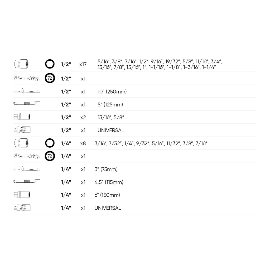 VALIGETTA DI UTENSILI IN POLLICI SATINATI DA 37 PEZZI JBM 54106