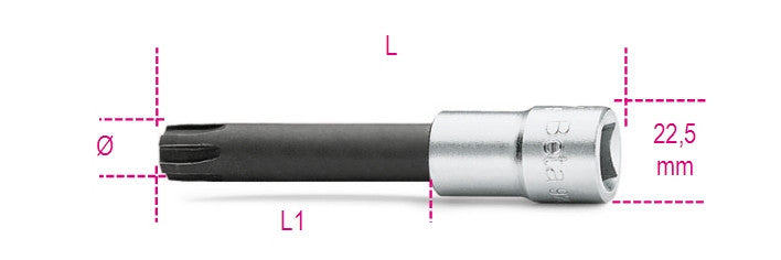chiavi a bussola maschio per viti con impronta esascanalata con attacco quadro femmina 1/2" cromate - inserti bruniti