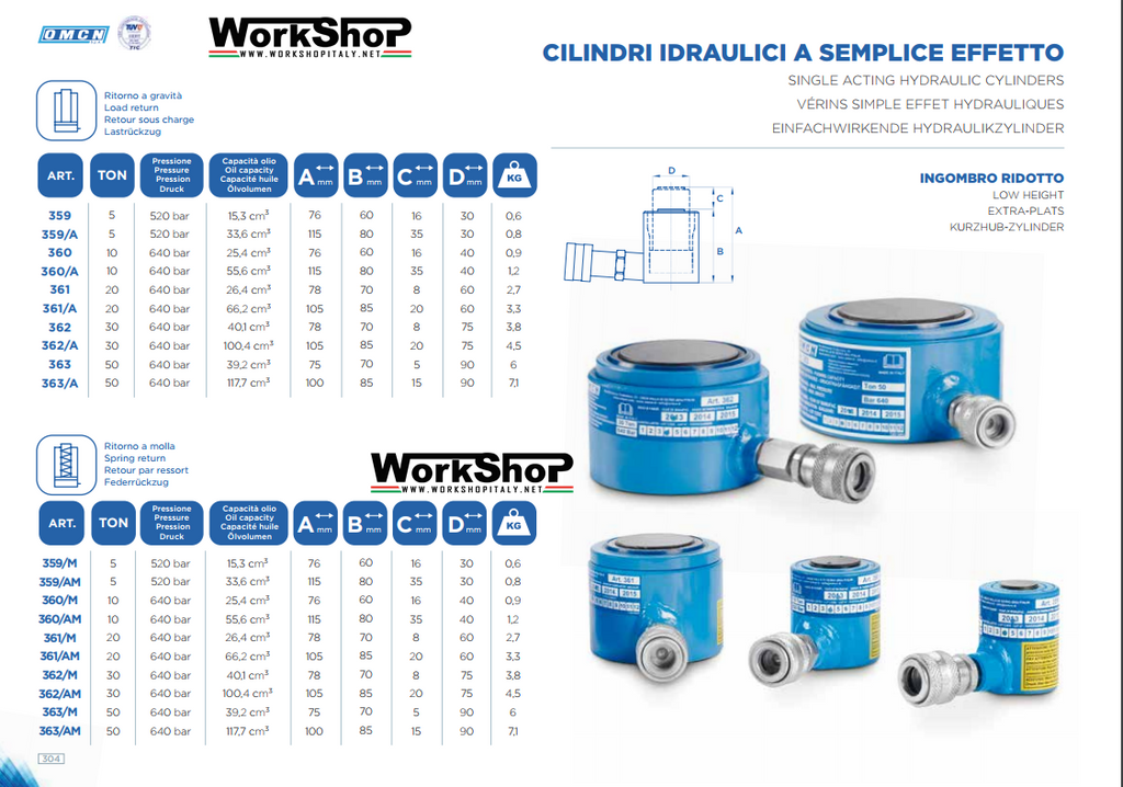 Cilindri idraulici a semplice effetto OMCN da 5 a 50 Ton .serie corta