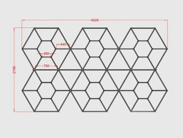 Illuminazione Led a soffitto esagonale a nido d’ape 4,8 x 2,8 mt