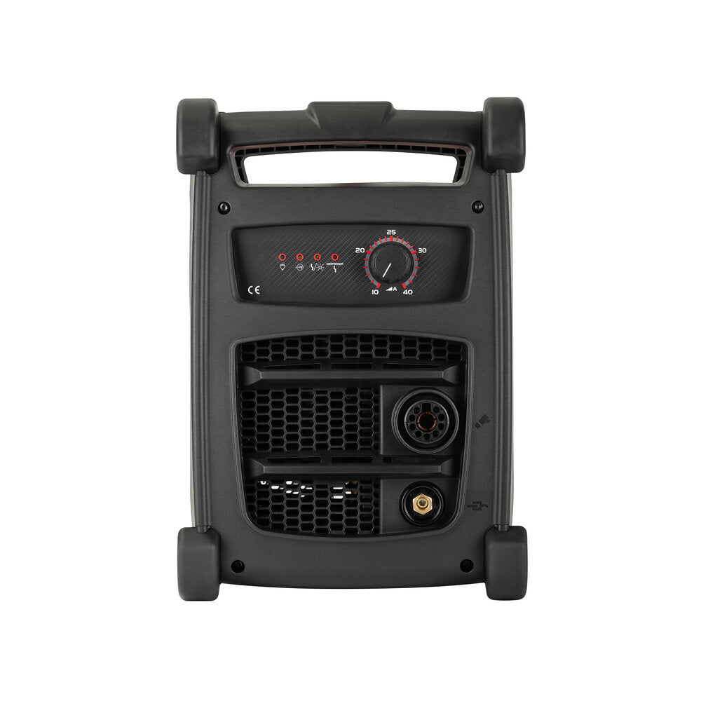 - Sistema inverter di taglio al plasma ad aria compressa da 40A, con innesco a contatto dell’arco pilota. Compressore integrato. Completo di torcia PK.