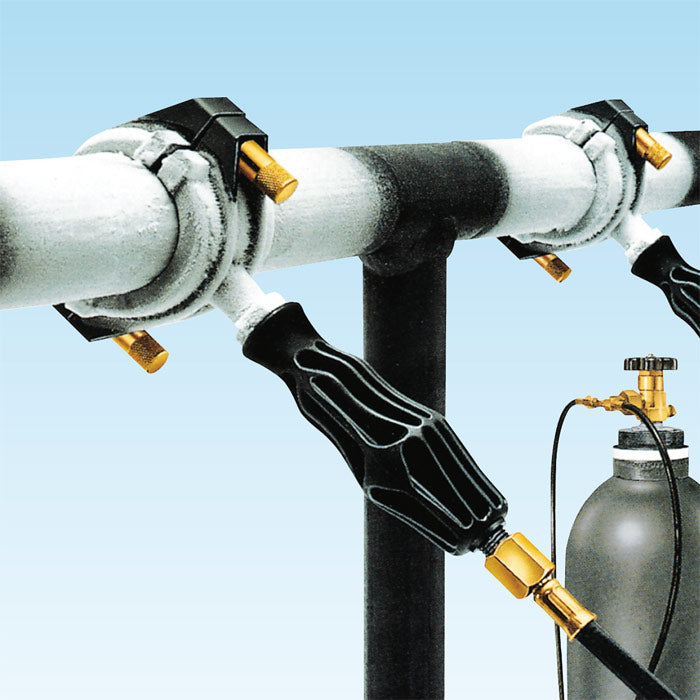 Per congelare velocemente e semplicemente tubature non svuotate con il refrigerante anidride carbonica. Per manutenzione, riparazione ed ampliamento di sistemi di tubazioni. Tubi di acciaio, rame, plastica, composti Ø 1/8–2” Ø 10–60 mm. Refrigerante: anidride carbonica. Potenza refrigerante fino a –79°C. Non tossica, non infiammabile.