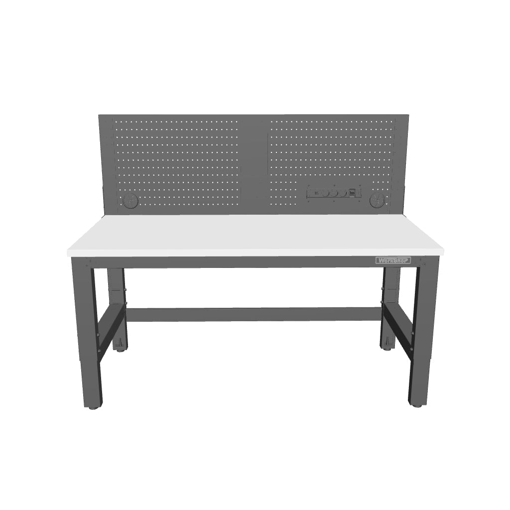 BANCO DA LAVORO 1550x725mm CON PIANO DI LAVORO IN ACCIAIO INOSSIDABILE E PANNELLO FORATO