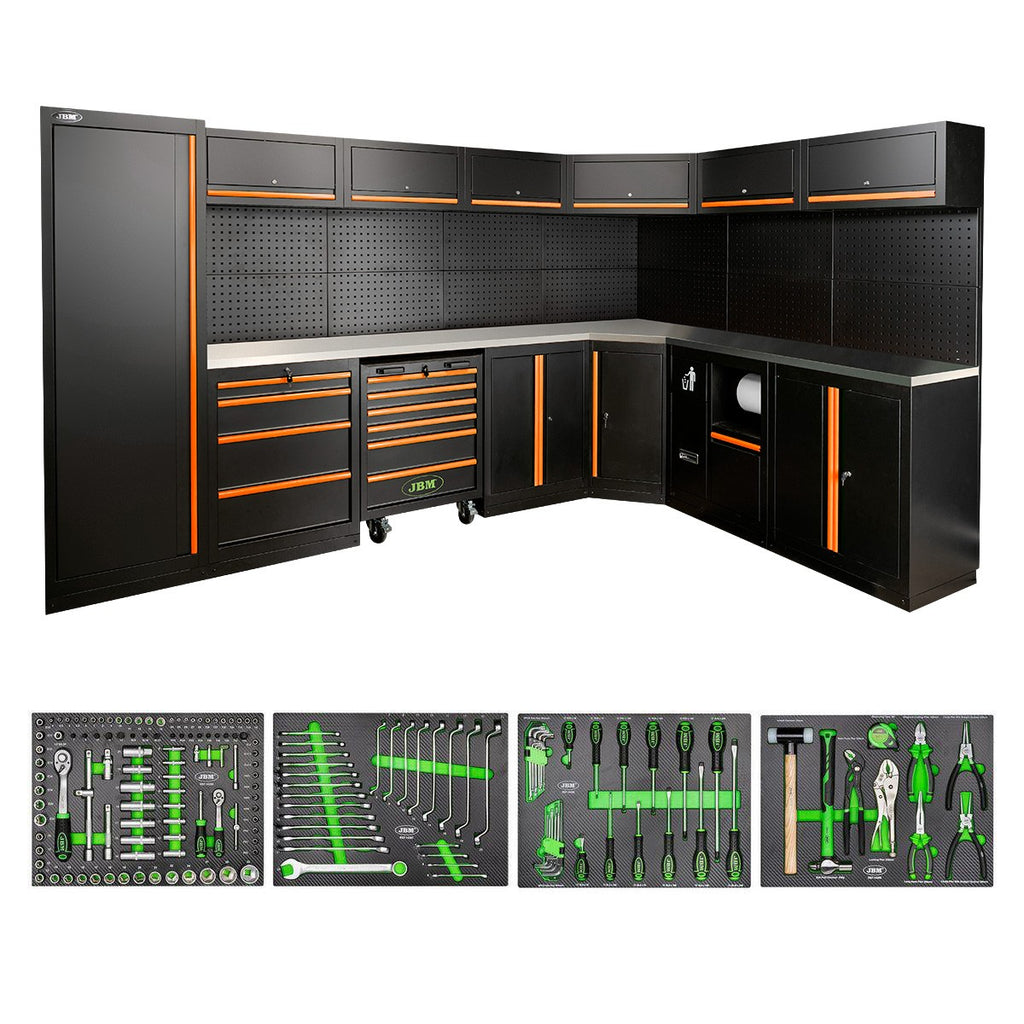 Arredo Officina Jbm profili arancioni 565 angolare completo di utensili piano inox