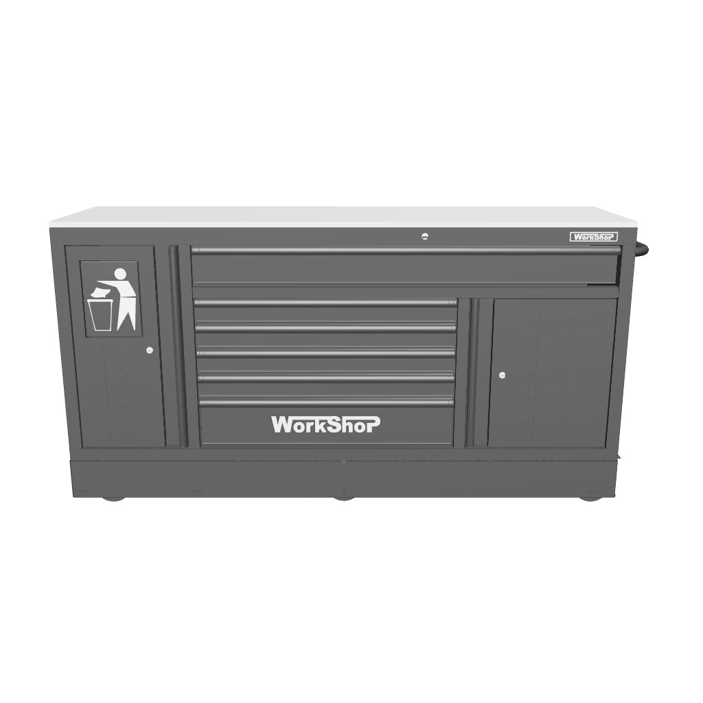 - Contenitore per IMMONDIZIA a sinistra (include contenitore in acciaio all'interno) con maniglia della porta in alluminio nero con terminali in plastica