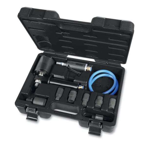Scopri il nostro rivoluzionario estrattore per iniettori diesel! Progettato per rimuovere gli iniettori con rapidità e senza sforzo, grazie ai raccordi inclusi, potrai collegare facilmente il martinetto pneumatico alla sede filettata dell'iniettore. Con il comando a distanza, lavorerai in totale sicurezza mentre il martinetto eserciterà una potente forza battente (fino a 1200 bpm), garantendo la rimozione anche degli iniettori più ostinati e bloccati dai residui carboniosi.