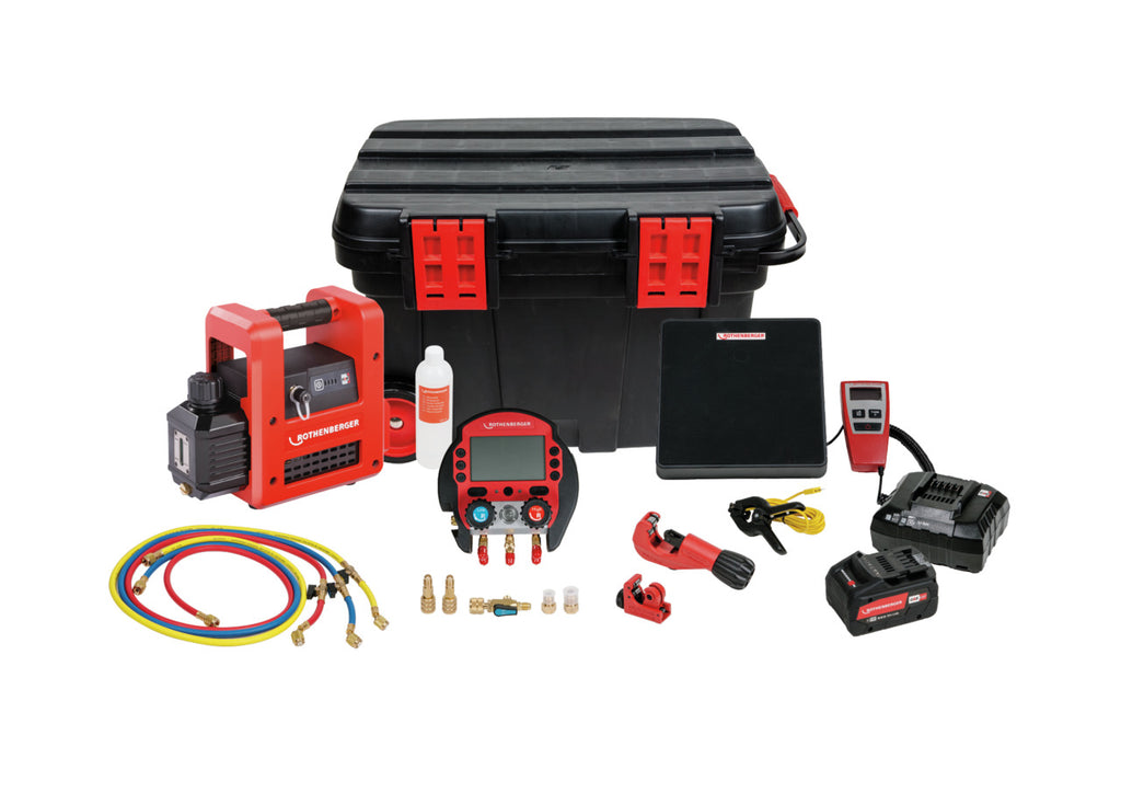 Il Set ROCADDY 120 R32 CL Analog / Digital (No. 1000003622/1000003623) comprende: pompa per il vuoto bistadio ROAIRVAC R32 2.0 CL* (No. 1000003229), 2x manometri a 4 vie (No. 170502) / (No. 1000001427) (Analogico), ROCOOL 600 (No. 1000000569) / termometro a morsetti (No. 1000000540) (Digital), tubi flessibili 5/16” SAE 1.500 mm (No. 1500000030), tubi flessibili 1/4” SAE 1.500 mm (No. 1500000028), ROSCALE 120 (No. 173004), 3/8” SAE F – 1/4” SAE M (No. 89501), 2 x [5/16” SAE F – 1/4” SAE M (No. 01700RD), 5/16” SAE M – 1/4” SAE F (No. 170016)], adattatore bombola 1/4” (No. 173205), adattatore bombola 5/16” (No. 173204), adattatore bombola per R32 (No. 173206), olio minerale (0,4 l), Tube Cutter 35 (No. 70027), Minicut II Pro (No. 70402), batteria 8.0 Ah Li-HD (No. 1000002549), caricabatteria (No. 1000001654), valigetta di trasporto (No. 169051)Pagamenti sicuri