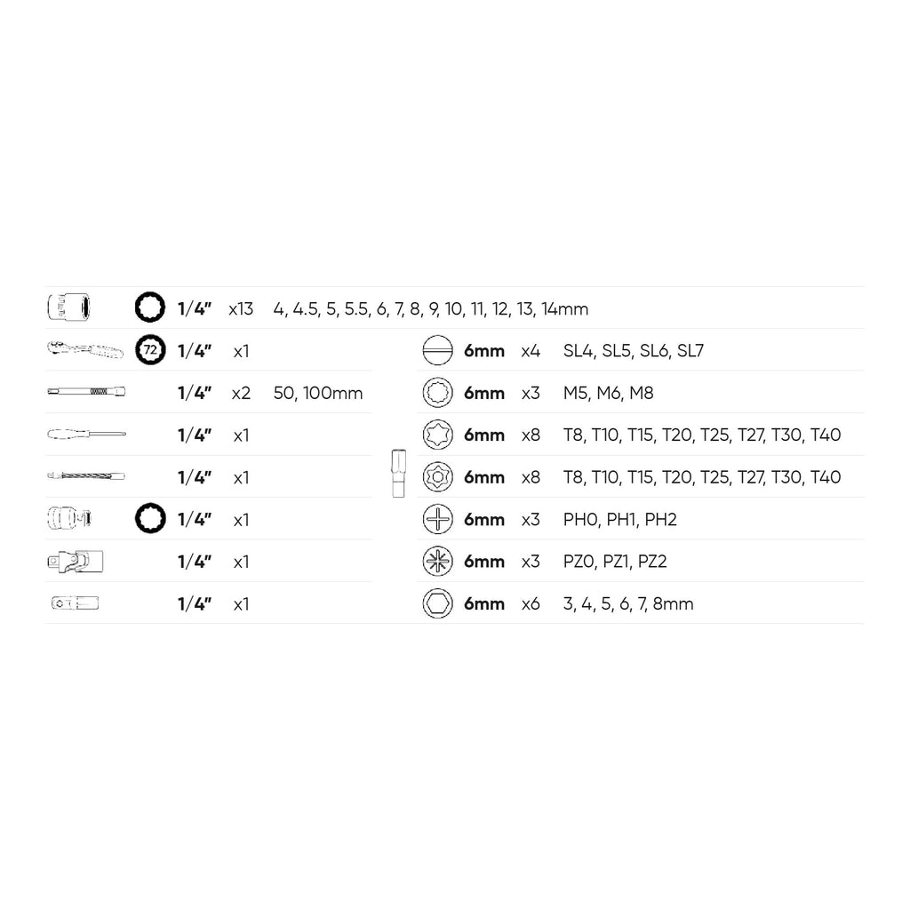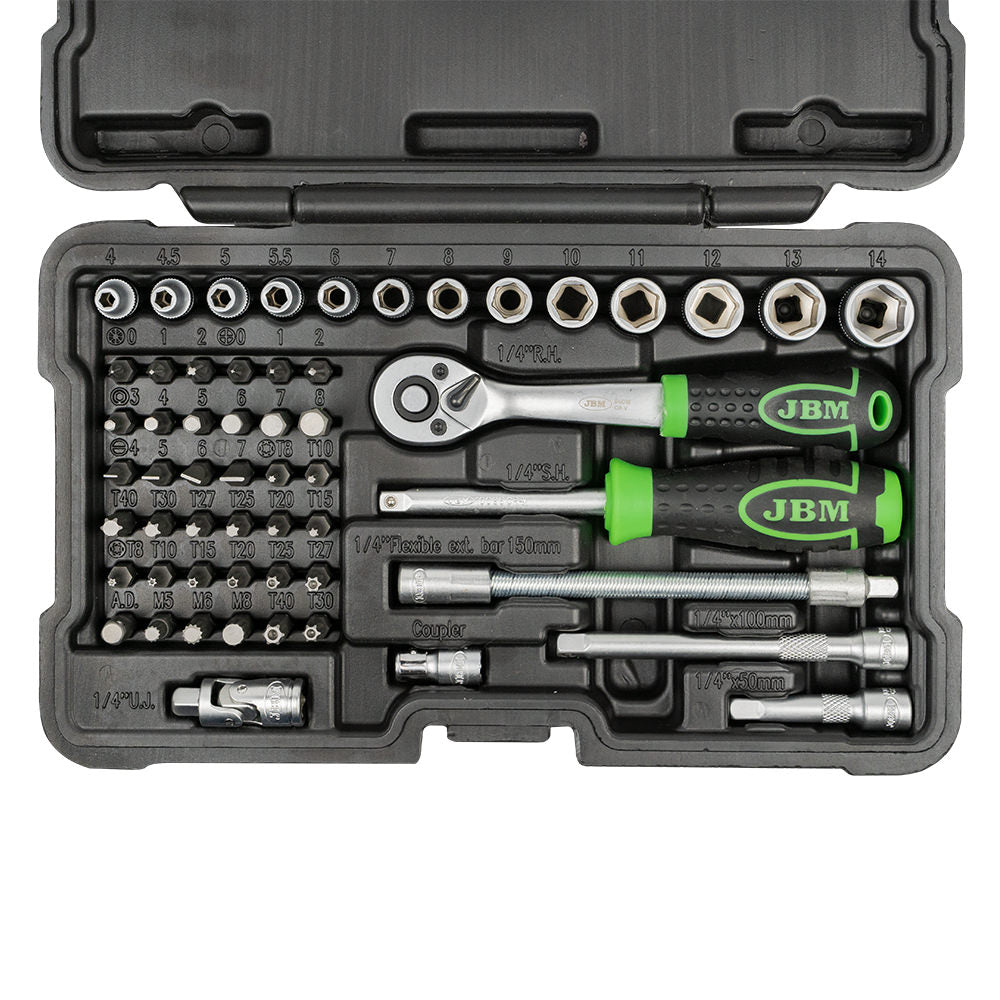 VALIGETTA DA 56 PEZZI DA 1/4" CON BUSSOLE POLIGONALI SATINATE JBM 54105