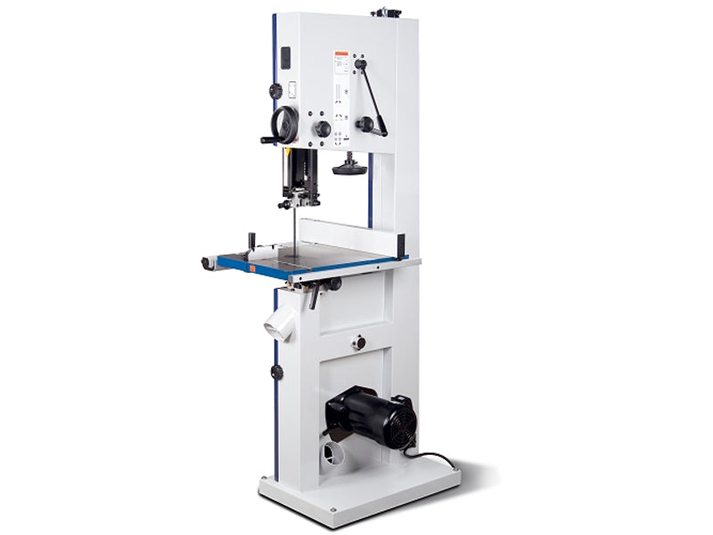 Sega a nastro verticale Holzkraft HBS 533 con motore trifase da 2250 W a due velocità, ideale per tagli su legno, plastica e metalli non-ferrosi.