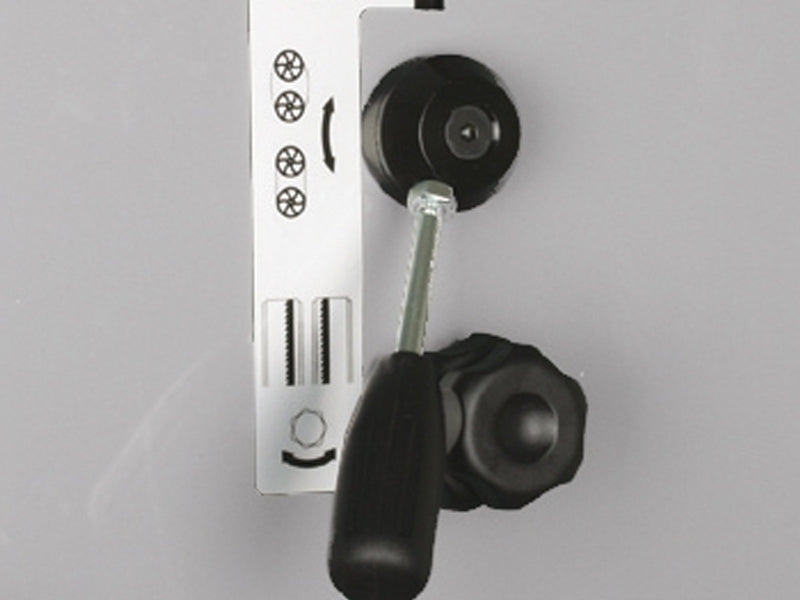 Il rapido tensionamento della lama avviene grazie alla leva eccentrica posta sulla parte posteriore della macchina con visualizzatore della tensione della lama integrato. Il valore leggibile attraverso una fessura posta sullo sportello.