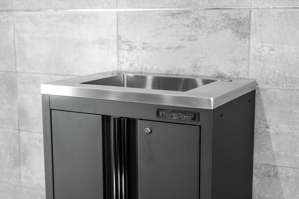 Mobile Officina Workshopitaly MPS con 2 antine e lavello inox Total Black completo di rubinetto e scarico