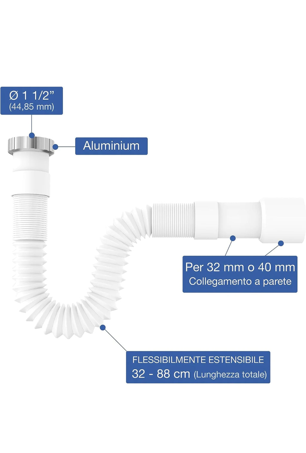Tubo allungabile da 32 a 88cm con diametro collegamento a muro da 32  / 44 mm