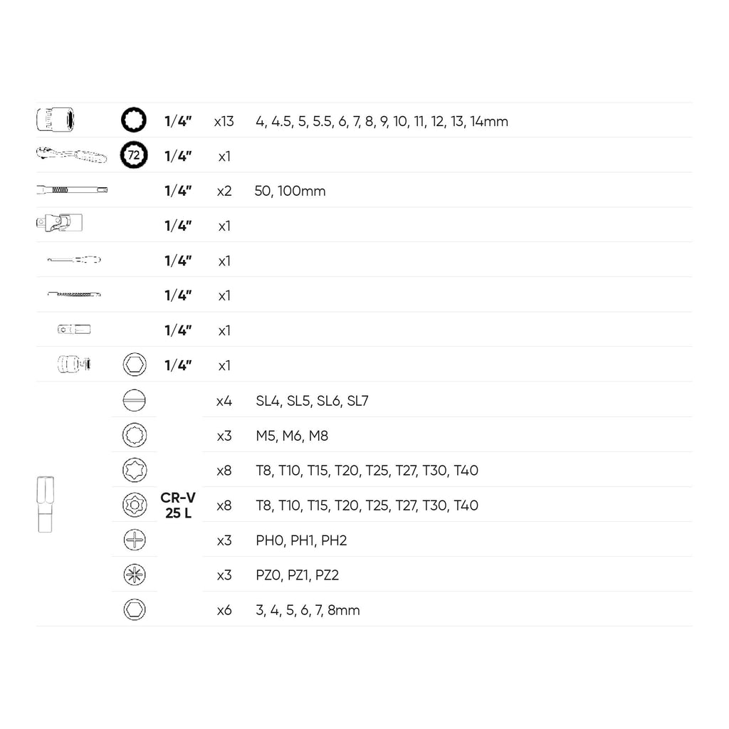 VALIGETTA DI UTENSILI DA 56 PEZZI CON BUSSOLE POLIGONALI SATINATE JBM 54140