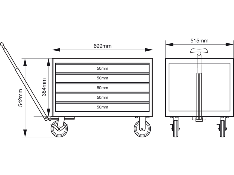 - E82 Cassettiera per officina su rotelle con 5 cassetti