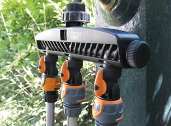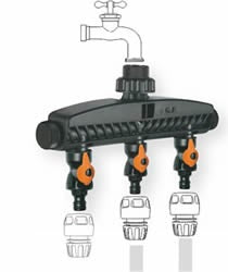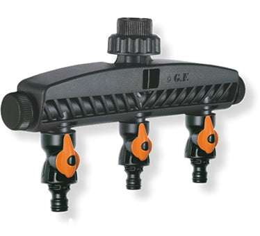 5 prese d’acqua distinte e regolabili per collegare raccordi portagomma o programmatori. |
