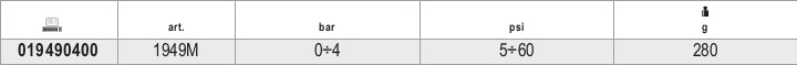 - Pressione di lettura: 0÷4 bar (5÷60 psi)