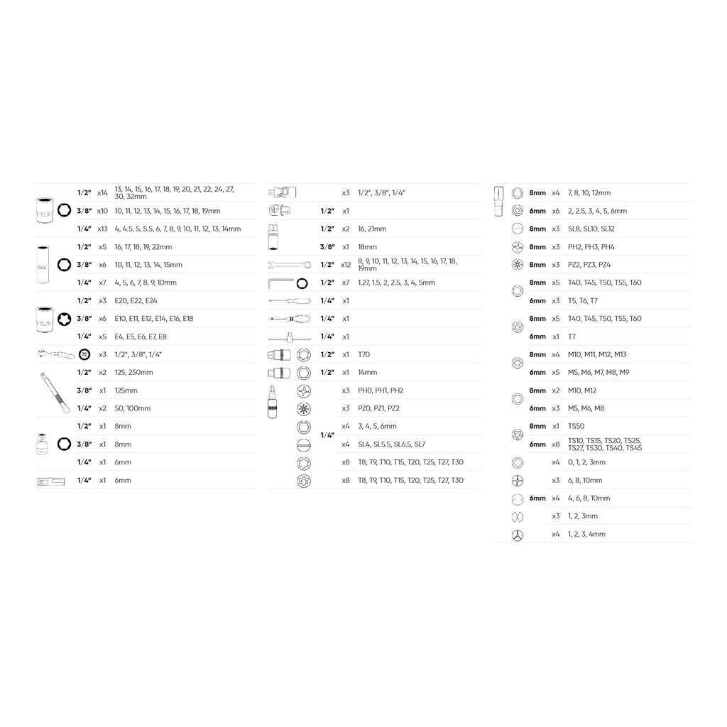 VALIGETTA DI UTENSILI DA 216 PEZZI CON BUSSOLE ESAGONALI SATINATE JBM 54034
