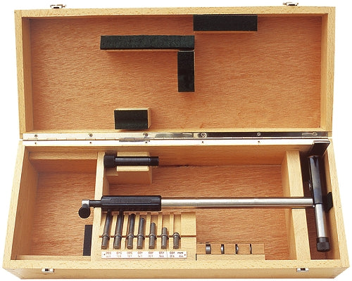 La ripetibilità dello strumento è di 0,0005 mm. La linearità su tutta la corsa del tastatore mobile è di 0,002 mm max. La staffa mobile di centraggio dello strumento ha la configurazione di settore sferico e ciò facilita l’introduzione anche se lo strumento non è perfettamente in asse col foro. Gli strumenti che hanno il campo di misura da 4,5 mm a 20 mm hanno sia i tastatori fissi che il tastatore di misura con riporti in metallo duro. A richiesta, si possono fornire anche staffe di centraggio con contatti in metallo duro. Possono essere impiegati in sala collaudo, per la misura di pezzi singoli, per controllo di serie di pezzi, per misure durante la lavorazione su macchine utensili. Per facilitare la messa a punto dello strumento, si consiglia di montare il comparatore sul relativo supporto senza effettuarne il bloccaggio definitivo, e di eseguire tale operazione al momento della registrazione dell’apparecchio, che si effettua agevolmente usando un pezzo con foro assunto come misura campione; oppure valendosi di uno strumento adatto (micrometro od altro). Gli alesametri sono forniti in cassette di legno senza comparatore. Si consigliano, per misure millesimali, i comparatori A1, A1S o CM1; per misure centesimali i comparatori SC601 o SC001. Poiché è uno strumento comparativo, occorre per prima cosa effettuarne l’azzeramento con l’impiego dello speciale supporto ATA , anelli di azzeramento, o mediante pezzi campione.