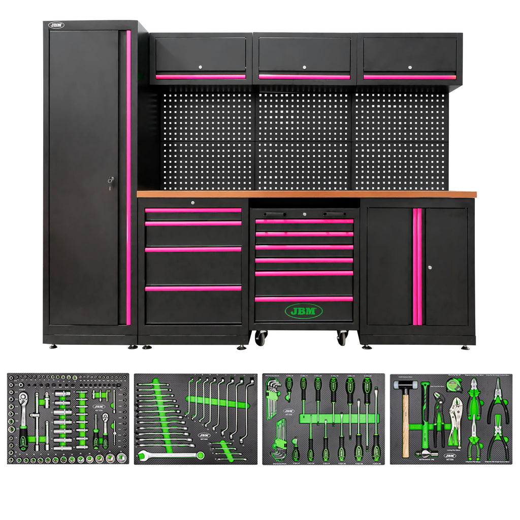 Arredo Garage Officina JBM rosa 2640x1950x500 completo di utensili