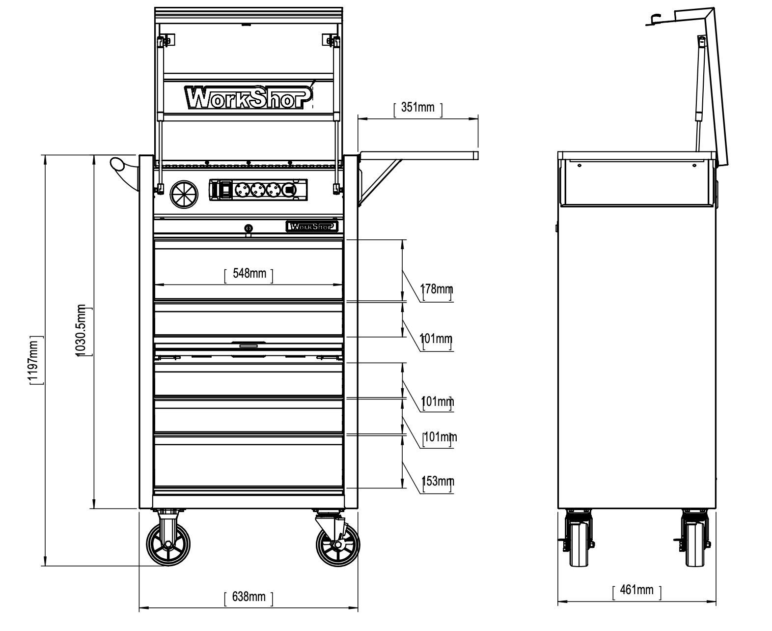 Carrello diagnostica MECCATRONICO 5 cassetti Workshopitaly Total Black
