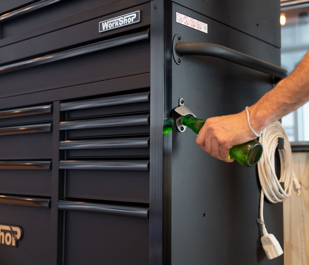 Maniglia laterale, portacavo e apribottiglie sul lato destro