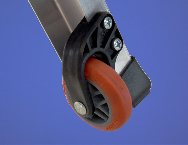 • Due rotelle antimpronta per il trasporto/movimentazione della scala
