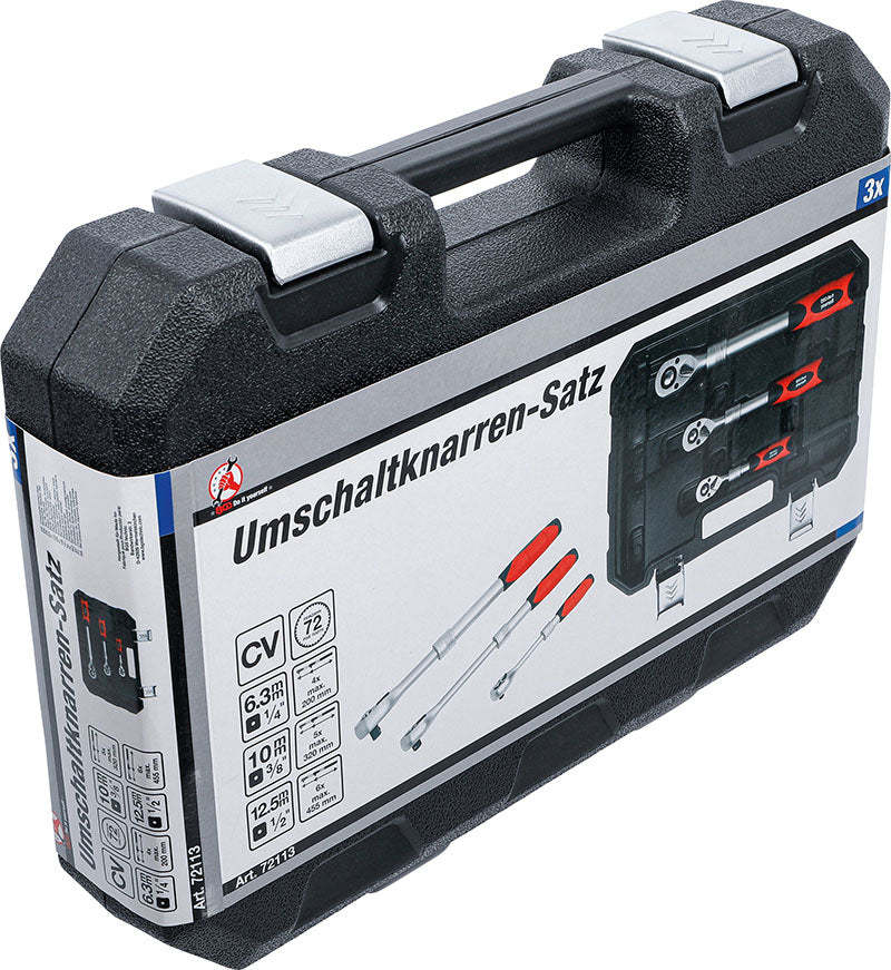 SET 3 PEZZI, CRICCHETTI REVERSIBILI ESTENSIBILI, ATTACCO 1/4” - 3/8” - 1/2” BGS72113