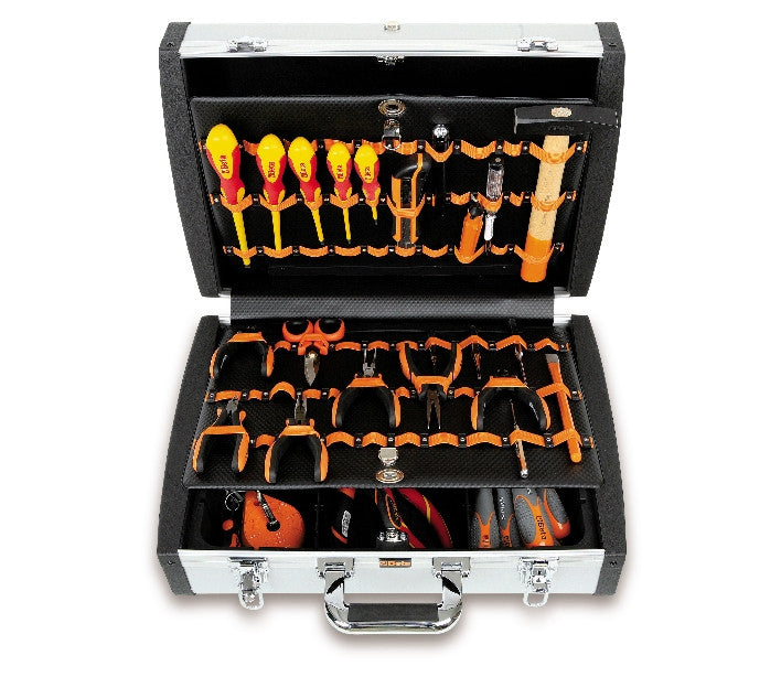 Valigia portautensili Beta 2033P EL/B ,in alluminio con fianchi in ABS + allestimento 98 utensili per elettronica.