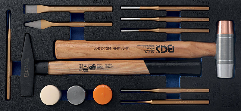 MODULO PER CARRELLO: 14 PEZZI MARTELLO CON TESTE INTERCAMBIABILI, CACCIASPINE E SCALPELLI BGS4129