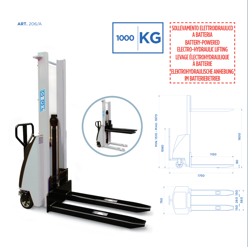 Muletto transpallet elettrico Omcn 1000kg. 206/A