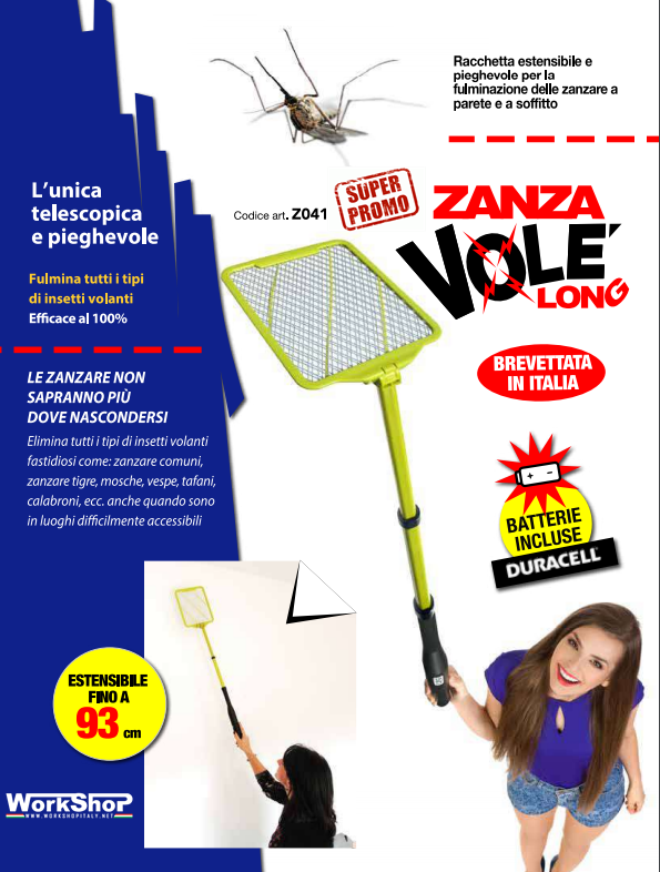 Racchetta telescopica antizanzare ragni ZANZAVOLE' LONG Cfg