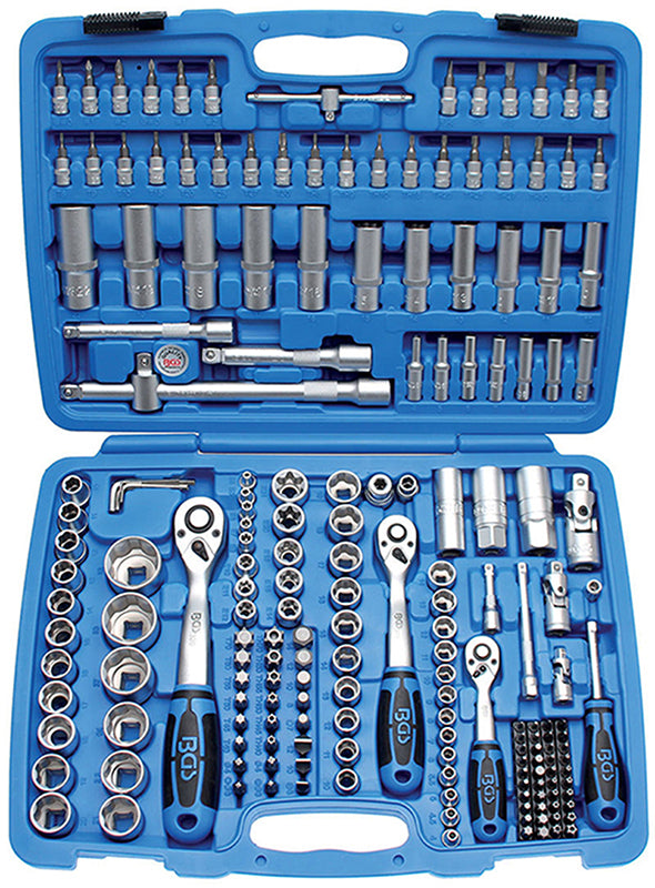 • comprende i seguenti utensili attacco 1/4": - cricchetto reversibile 72 denti - 13 bussole: 4 - 4,5 - 5 - 5,5 - 6 - 7 - 8 - 9 - 10 - 11 - 12 - 13 - 14 mm - 7 bussole lunghe: 4 - 5 - 6 - 7 - 8 - 9 - 10 mm - 5 bussole Torx femmina: E4 - E5 - E6 - E7 - E8 - prolunghe: 50, 100 mm - snodo - impugnatura 150 mm - leva con quadro scorrevole - adattatore portainserti per inserti att. 1/4" - bussole con maschio • comprende i seguenti utensili attacco 3/8": - cricchetto reversibile 72 denti - 10 bussole: 10-11-12-13-14-15-16-17-18-19 mm - 6 bussole lunghe: 10-11-12-13-14-15 mm - 5 bussole Torx femmina: E10 - E11 - E12 - E14 - E16 - prolunga: 125 mm - snodo - adattatore portainserti per inserti 5/16" (8 mm) - bussola per candele: 18 mm • comprende i seguenti utensili attacco 1/2": - cricchetto reversibile 72 denti - 17 bussole: 10-11-12-13-14-15-16-17-18-19-20-21-22-24-27-30-32 mm - 2 bussole lunghe: 16-17-18-19-22 mm - 3 bussole Torx femmina: E18 - E20 - E24 - prolunga: 125, 250 mm - quadro scorrevole per uso come leva a T di prolunghe - snodo - bussole per candele: 16 - 21 mm - adattatore portainserti per inserti 5/16" (8 mm) • inserti attacco 5/16": - 3 Inserti Taglio: 8 -10 - 12 mm - 6 inserti Torx: TX40 - TX45 - TX50 - TX55 - TX60 - TX70 - 6 inserti Torx c/foro: TH40 - TH45 - TH50 - TH55 - TH60 - TH70 - Croce: PH: 3 - 4, PZ: 3 - 4 - Esagonali: 7-8-10-12-14 mm • inserti attacco 1/4": - 3 Inserti Taglio: 8 -10 - 12 mm - 10 inserti Torx: TX5-TX6-TX7-TX10-TX15-TX20-TX25-TX27-TX30-TX40 - 8 inserti Torx c/foro: TH7-TH10-TH15-TH20-TH25-TH27-TH30-TH40 - 5 Ribe: M5-M6-M7-M8-M9 - 3 XZN: M5-M6-M8 - 5 Punte con foro: TS10-TS15-TS20-TS25-TS27-TS30-TS40-TS45 - Croce: PH: 3 - 4, PZ: 3 - 4 - Esagonali: 2-2.5 mm • chiavi a L Esagonali: 1 - 1,5 - 2 - 2,5 - 3 - 4 - 5 mm • peso 8,8 kg |