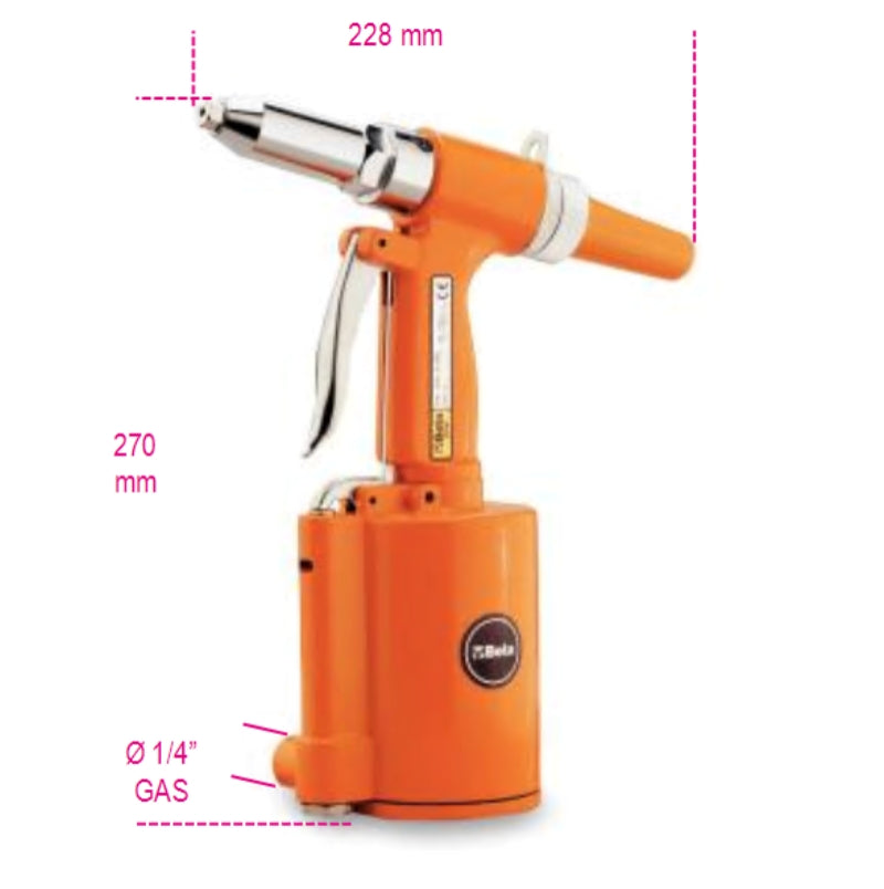 - Fornita con ugelli intercambiabili da 2,4 -3,2 - 4,0 - 4,8 mm, deflettore raccogli chiodi e gancio per bilanciatore