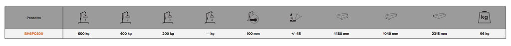 - Gru pieghevole e 3 posizioni fisse del braccio di carico: 600, 400 e 200 kg