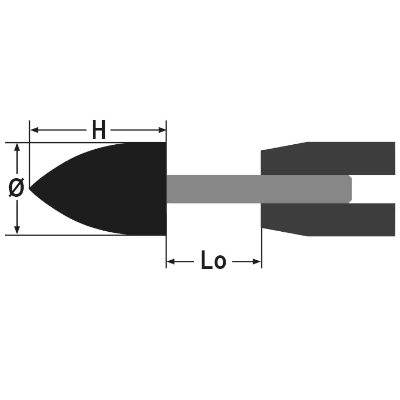 Mole abrasive con gambo, granuli abrasivi di corindone rosa con legante ceramico, forma ad ogiva Beta 11116