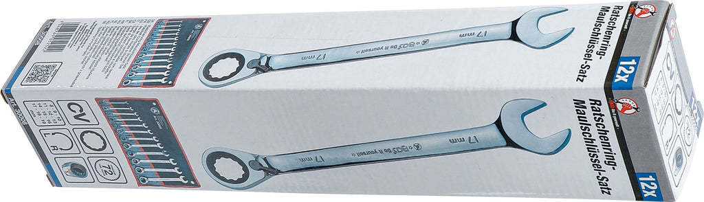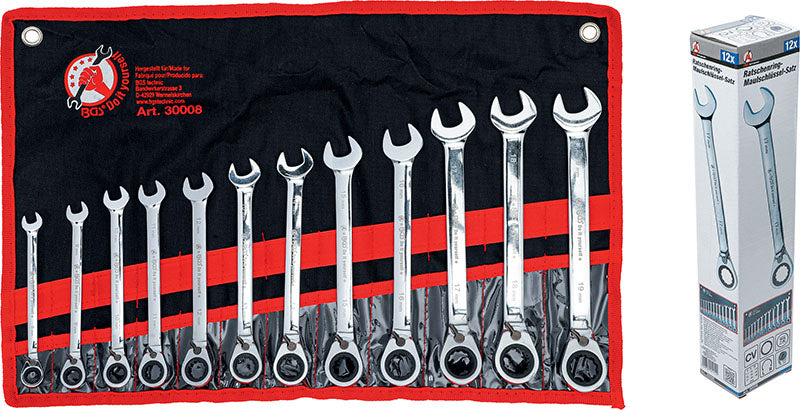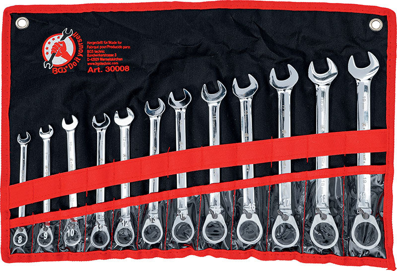 SET 12 PEZZI, CHIAVI COMBINATE A CRICCHETTO REVERSIBILI, 8 - 19 MM BGS30008