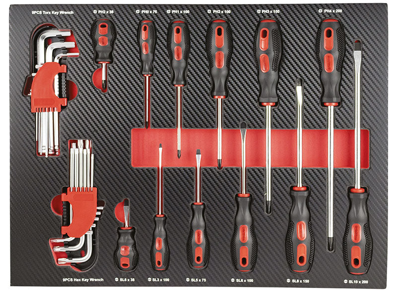 - set 9 chiavi a "L" Torx: TX10 - TX15 - TX20 - TX25 - TX27 - TX30 - TX40 - TX45 - TX50