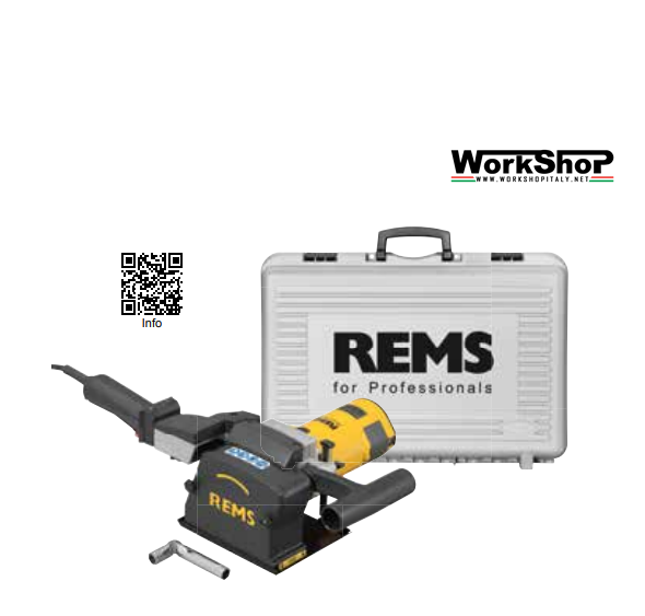 Costruzione REMS Krokodil 125: Macchina motore compatta e maneggevole, solo 5,8 kg. Robusta, adatta per l’uso in cantiere. Lavoro facile e veloce, ad esempio solo 25 s per realizzare una scanalatura in muri lunga 500 mm e profonda 38 mm. Superfi cie di lavoro che appoggia completamente durante l’intera operazione di scanalatura/ taglio per l’affondamento guidato dei dischi diamantati, lavoro sicuro e senza polvere ed avanzamento facile ed uniforme. Pratica impugnatura con interruttore, regolabile in 2 posizioni, parallela o trasversale all’asse della macchina, ed impugnatura di sostegno girevole, per un’ottimale posizione di lavoro e per lavorare in modo ergonomico. Bloccaggio dell’albero motore per il cambio facile dei dischi diamantati universali. 4 dischi distanziatori di diverso spessore, avvitati insieme ai dischi diamantati e interposti ad essi sulla distanza richiesta delle scanalature, formano un blocco stabile e assicurano una larghezza di taglio costante. Battuta di profondità regolabile. Bocchettone di aspirazione integrato nell’alloggiamento per il collegamento di un depolveratore.